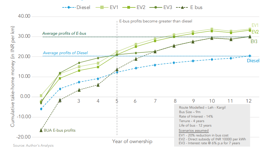 1. Under prevailing loan conditions, 95 per cent of e-bus owners will face significantly higher challenges than diesel bus owners, during the loan repayment period of 4-7 years.